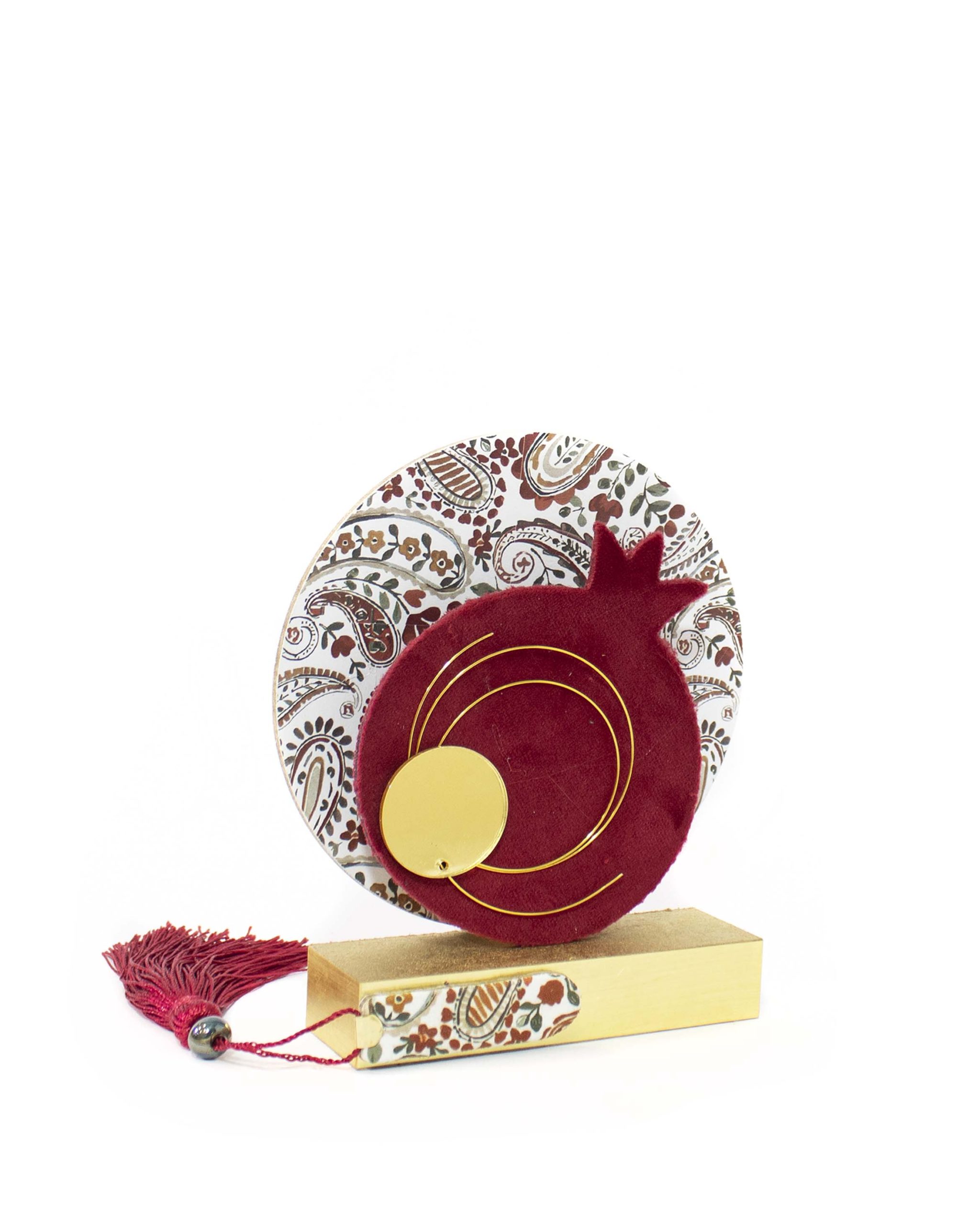 Βελούδινο ρόδι σε ξύλινη βάση με στρογγυλή πλάτη