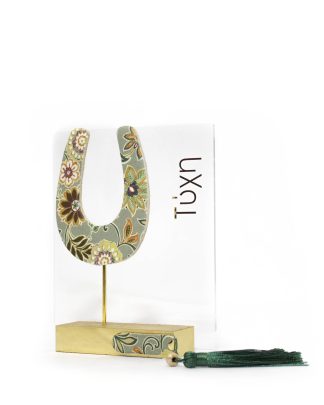 Χειροποίητο γούρι 2026 με υφασμάτινο πέταλο σε ξύλινη βάση και πλάτη απο plexiglass  με ευχή ΄΄τυχη΄΄