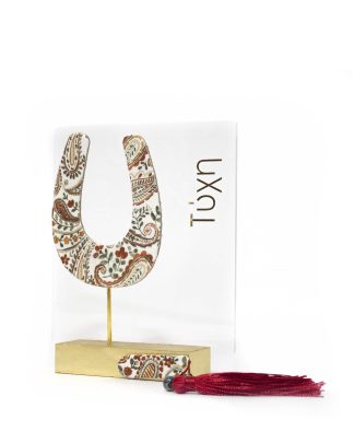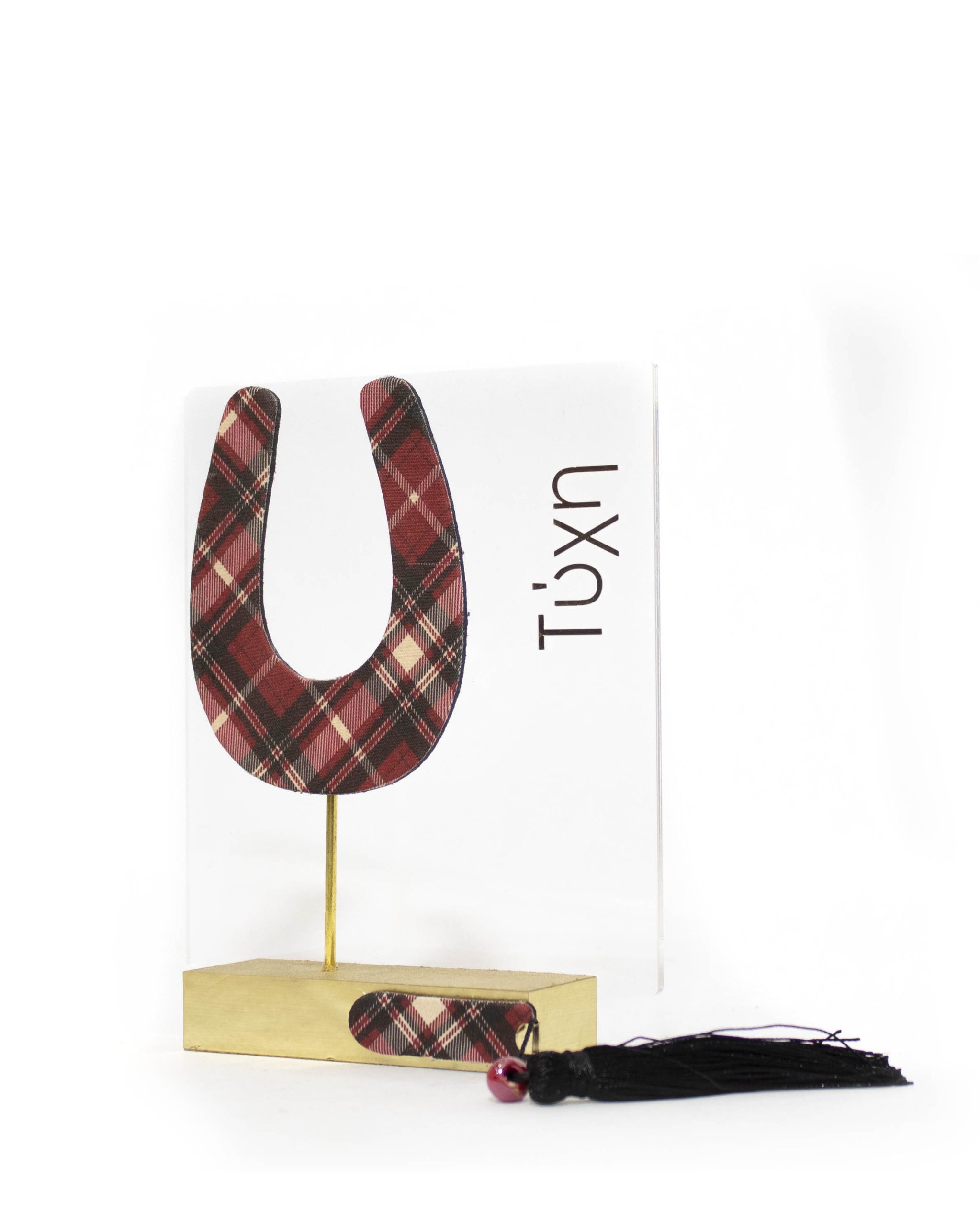 Χειροποίητο γούρι 2026 με υφασμάτινο πέταλο σε ξύλινη βάση και πλάτη απο plexiglass  με ευχή ΄΄τυχη΄΄