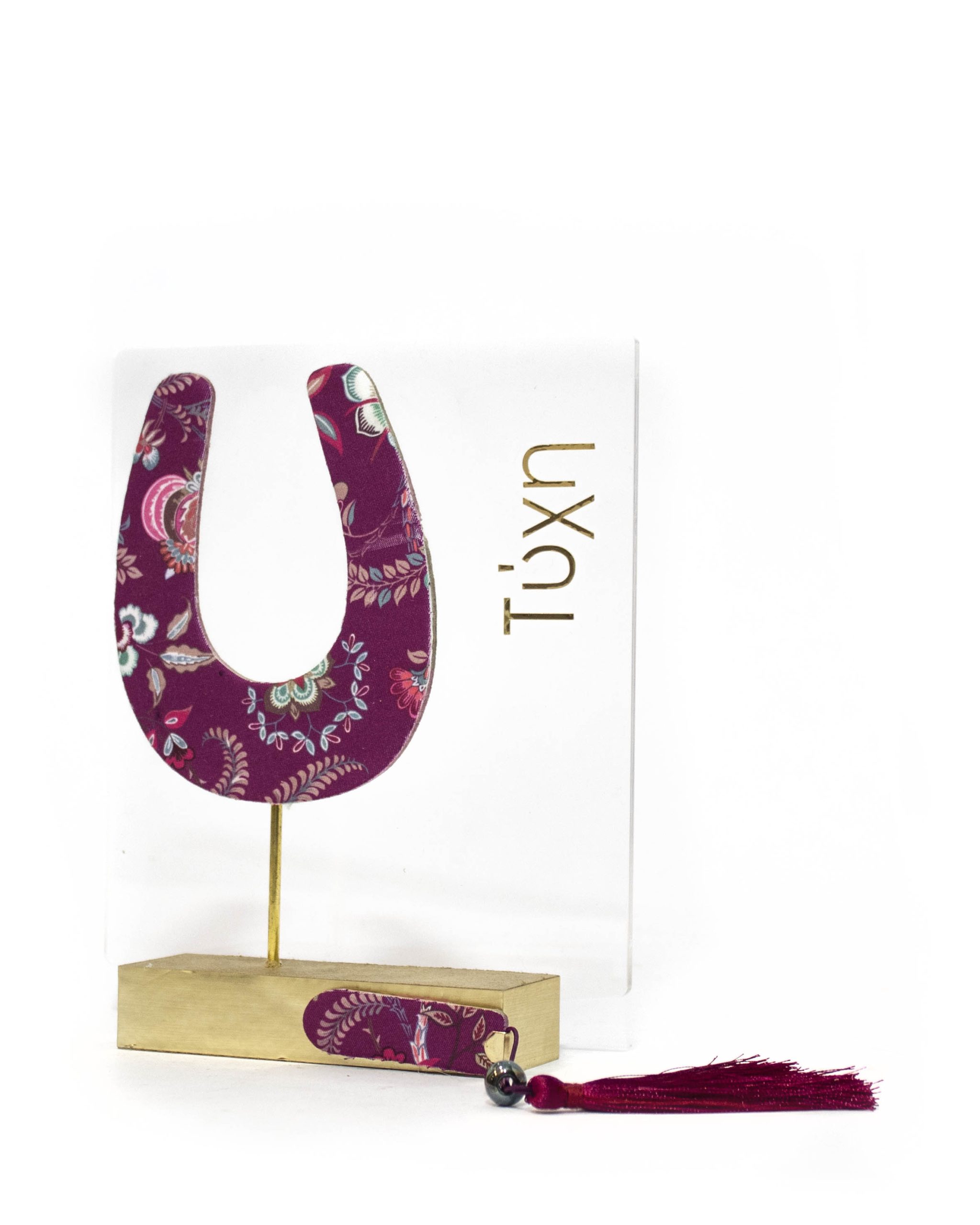 Χειροποίητο γούρι 2026 με υφασμάτινο πέταλο σε ξύλινη βάση και πλάτη απο plexiglass  με ευχή ΄΄τυχη΄΄
