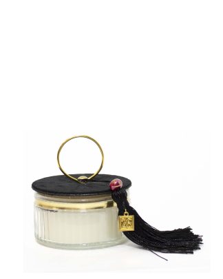 Αρωματικό κερί- γούρι σε γυάλινο βάζο με βελούδινο καπάκι, διακοσμημένο με φούντα και στοιχείο 26