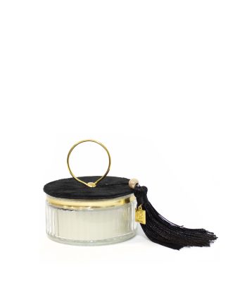 Αρωματικό κερί- γούρι σε γυάλινο βάζο με βελούδινο καπάκι, διακοσμημένο με φούντα και στοιχείο 26
