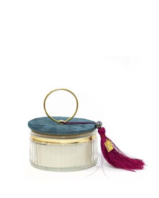 Αρωματικό κερί- γούρι σε γυάλινο βάζο με βελούδινο καπάκι, διακοσμημένο με φούντα και στοιχείο 26