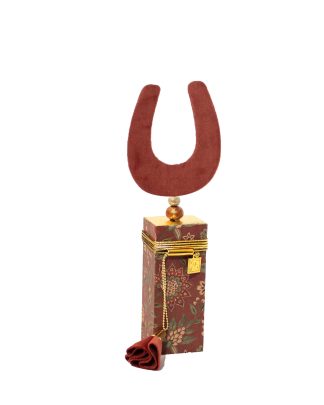 Χειροποίητο επιτραπέζιο γούρι, βελούδινο ρόδι σε ξύλινη βάση .