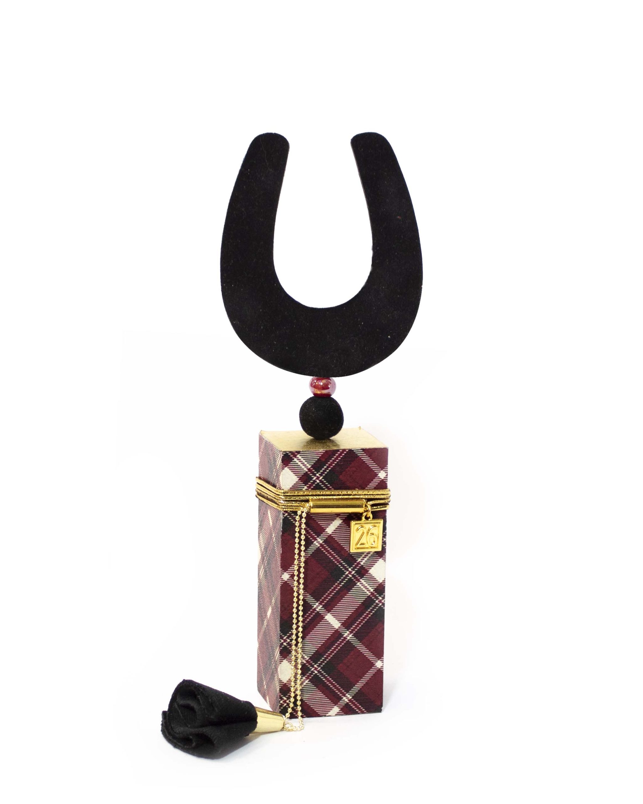 Χειροποίητο επιτραπέζιο γούρι, βελούδινο πέταλο σε ξύλινη βάση .