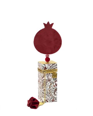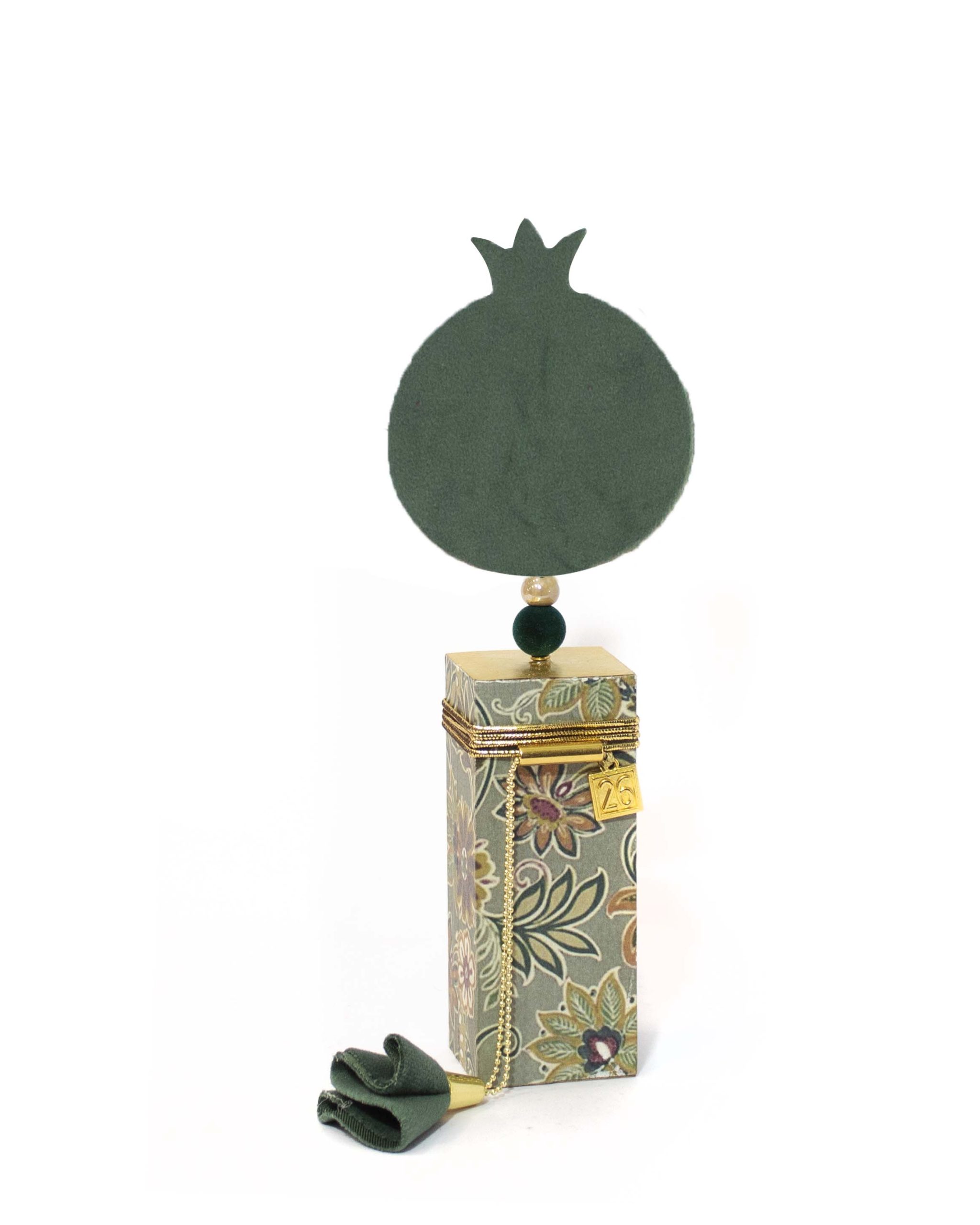 Χειροποίητο επιτραπέζιο γούρι, βελούδινο ροδι σε ξύλινη βάση .