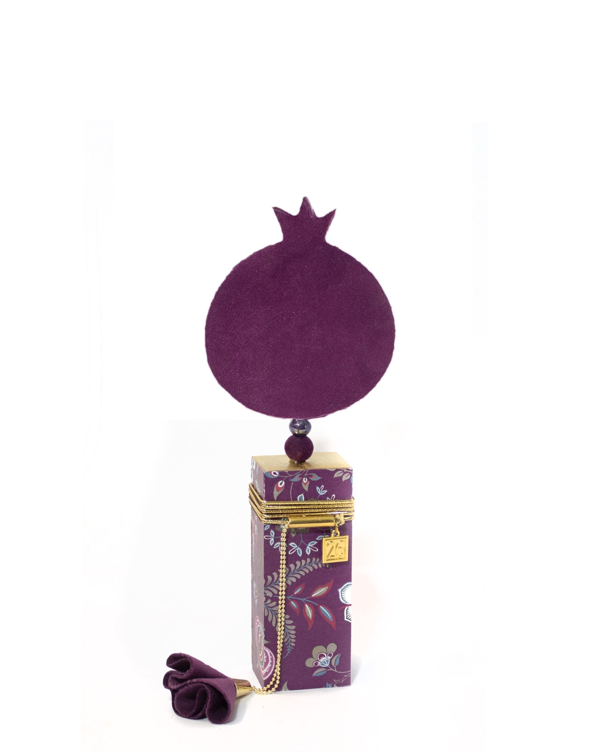 Χειροποίητο επιτραπέζιο γούρι, βελούδινο ρόδι σε ξύλινη βάση .