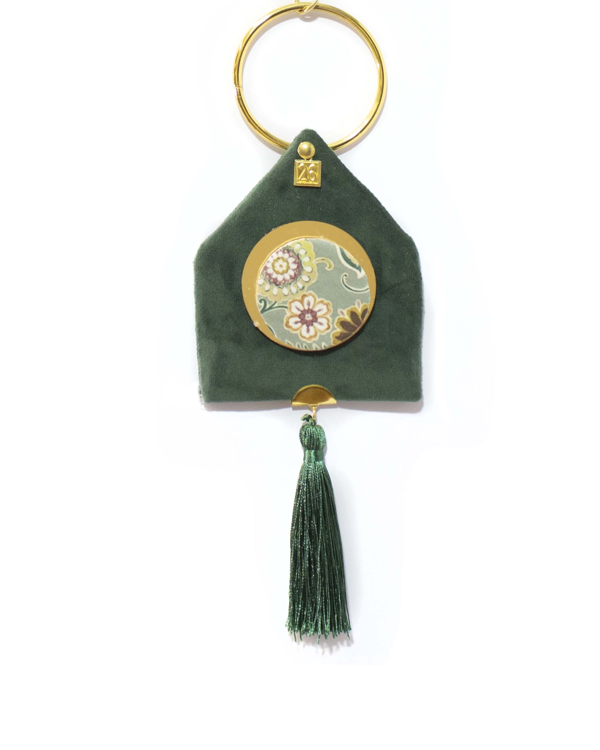 Κρεμαστό γούρι,  βελούδινο σπιτάκι με μεταλλικό κρίκο