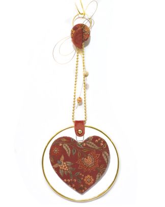 Κρεμαστό γούρι, μεταλλικό στεφανάκι με υφασμάτινη καρδιά