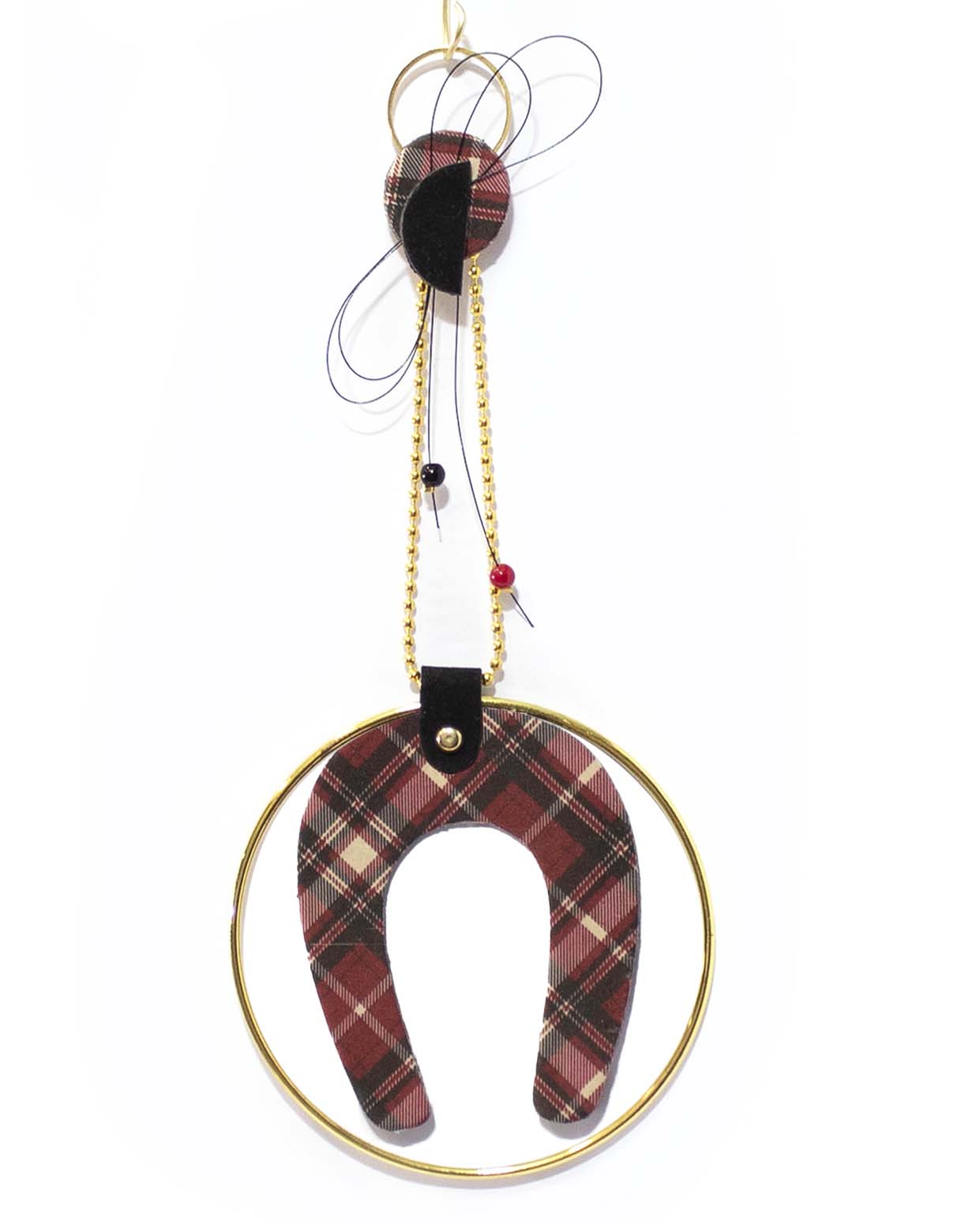 Κρεμαστό γούρι, μεταλλικό στεφανάκι με υφασμάτινο πέταλο.