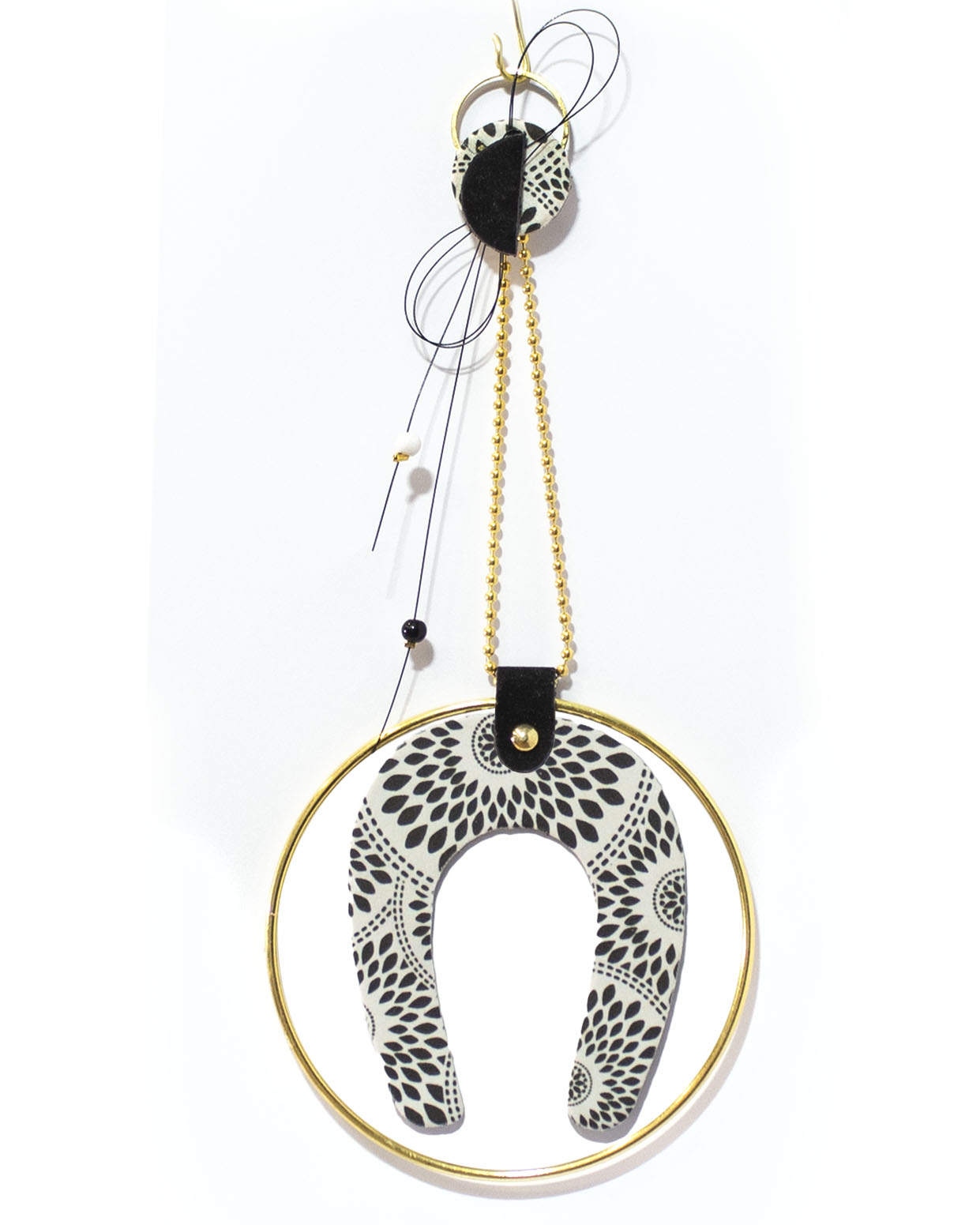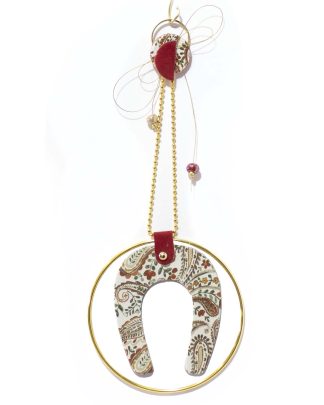 Κρεμαστό γούρι, μεταλλικό στεφανάκι με υφασμάτινο πέταλο.