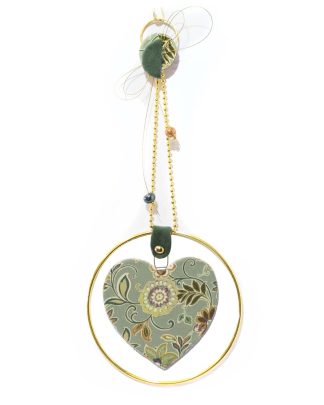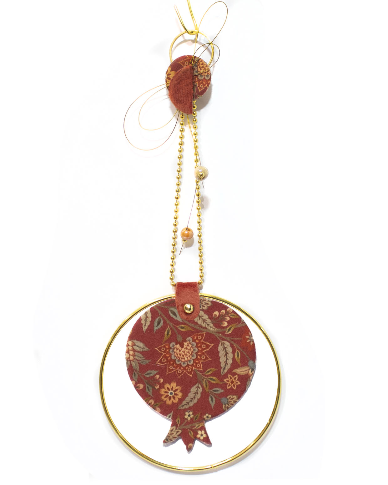 Κρεμαστό γούρι, μεταλλικό στεφανάκι με υφασμάτινο ρόδι