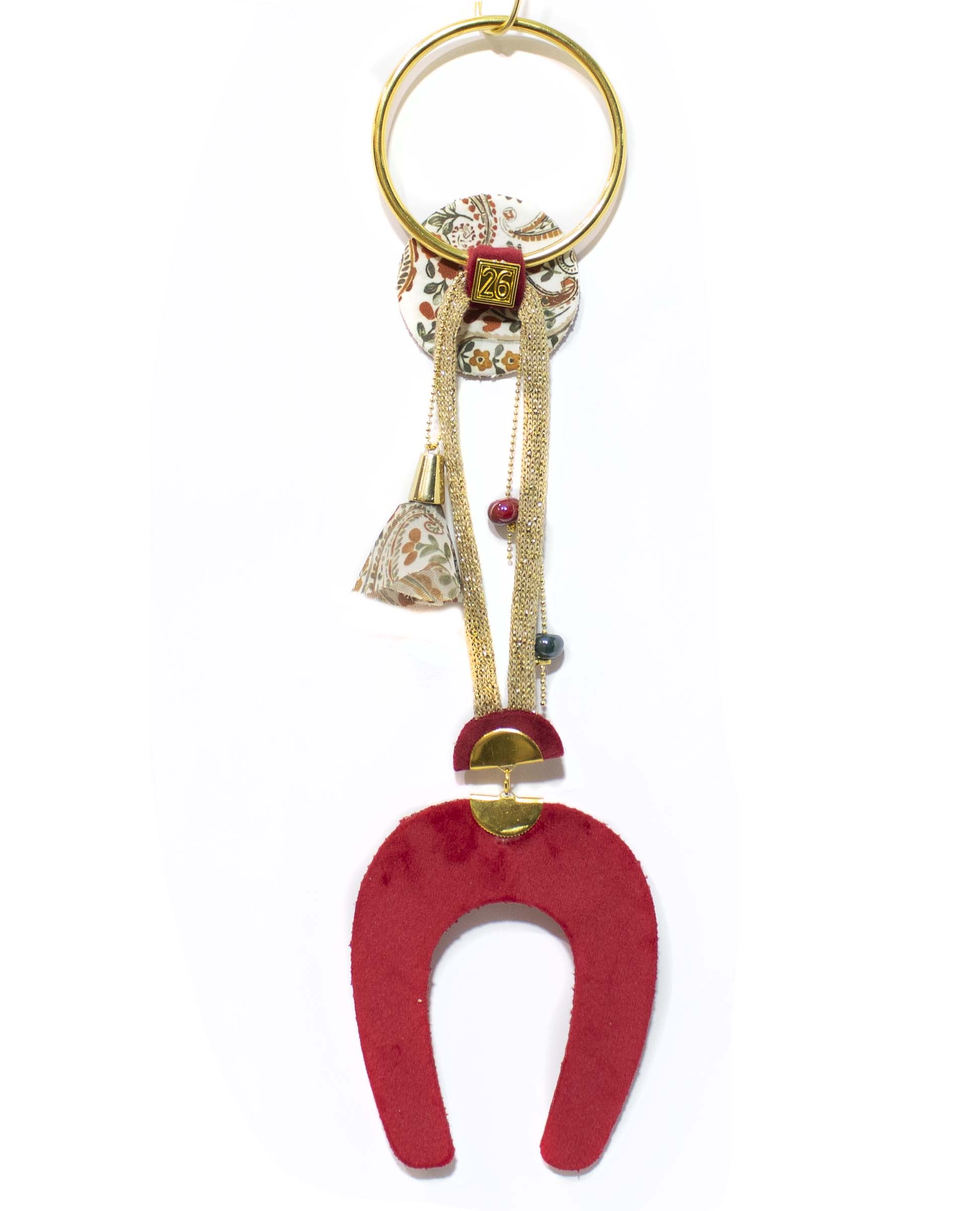 Χειροποίητο κρεμαστό γούρι, βελούδινο πέταλο με μεταλικό κρίκο
