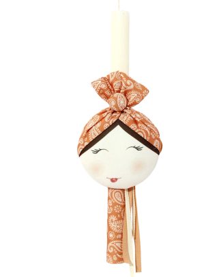 Πασχαλινή λαμπάδα με χειροποίητo υφασμάτινο κοριτσάκι με μπαντάνα