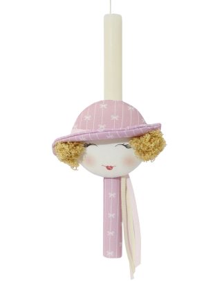 Πασχαλινή λαμπάδα με χειροποίητo υφασμάτινο κοριτσάκι με φιόγκο