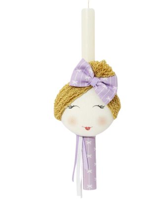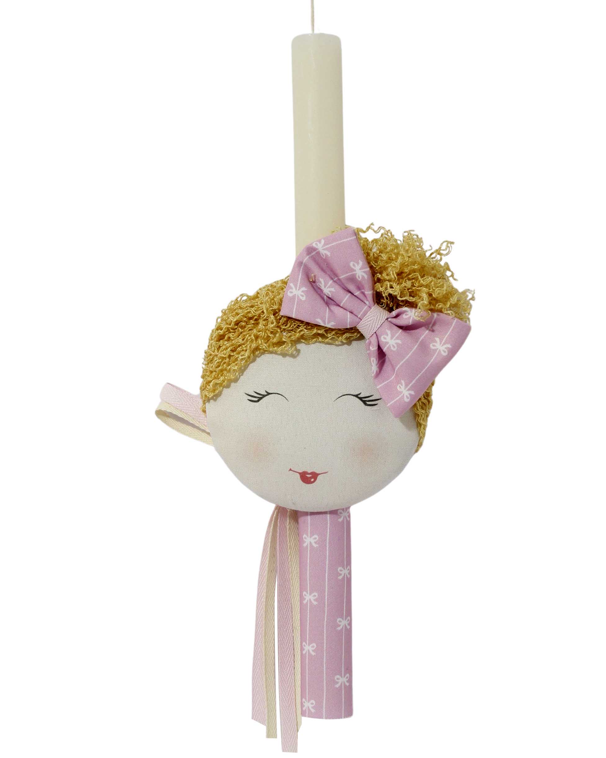 Πασχαλινή λαμπάδα με χειροποίητo υφασμάτινο κοριτσάκι με φιόγκο