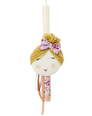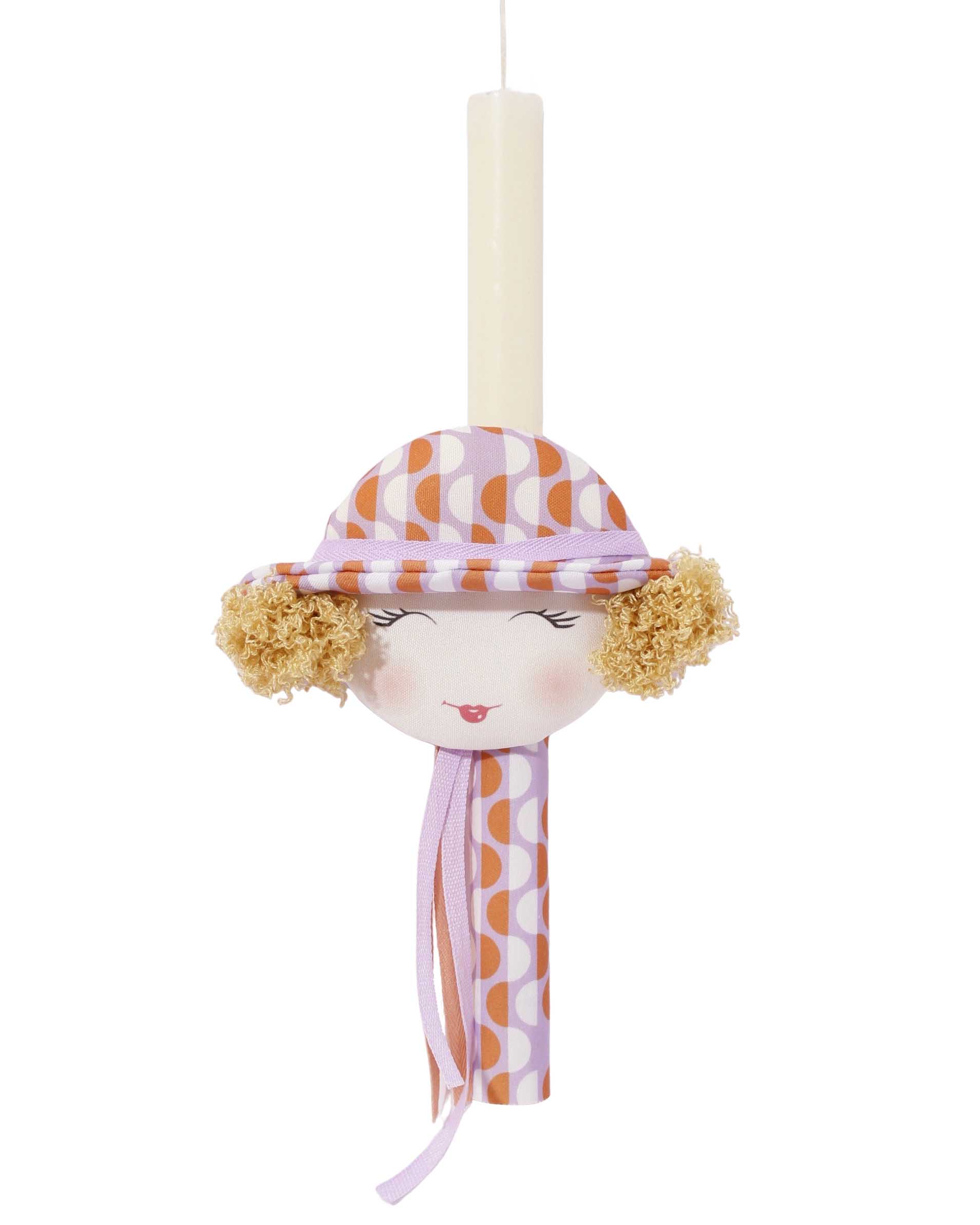 Πασχαλινή λαμπάδα με χειροποίητo υφασμάτινο κοριτσάκι με καπέλο
