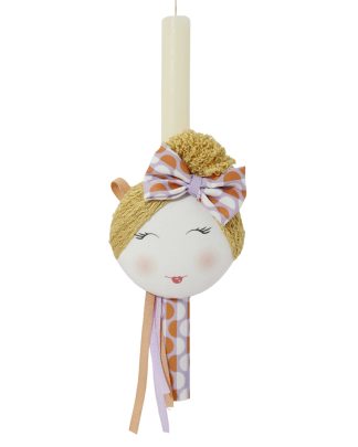 Πασχαλινή λαμπάδα με χειροποίητo υφασμάτινο κοριτσάκι με καπέλο
