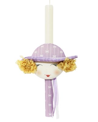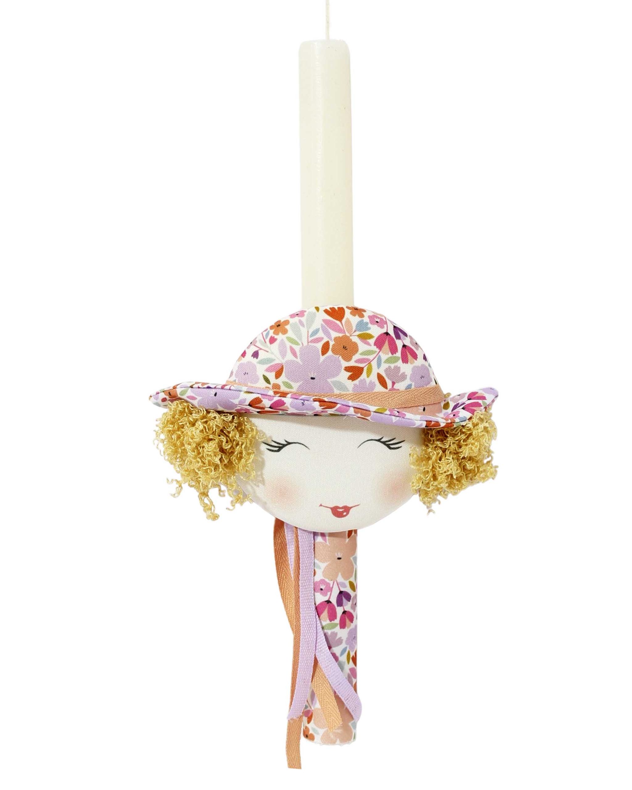 Πασχαλινή λαμπάδα με χειροποίητo υφασμάτινο κοριτσάκι με καπέλο