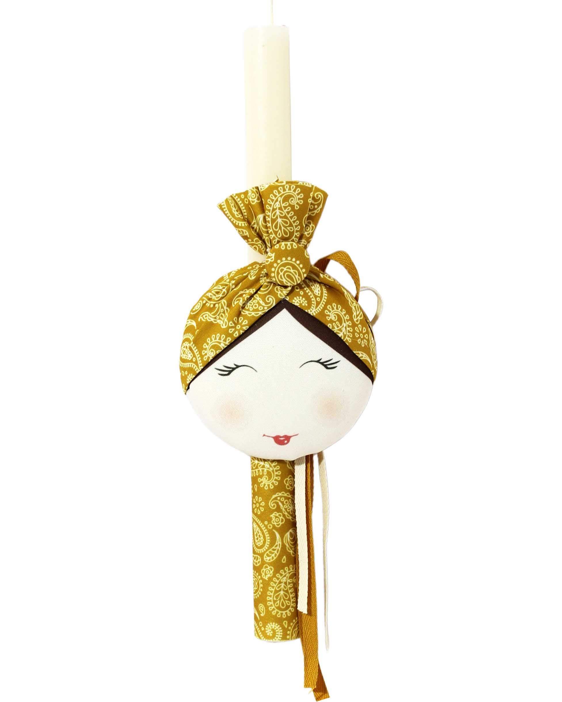 Πασχαλινή λαμπάδα με χειροποίητo υφασμάτινο κοριτσάκι με μπαντάνα