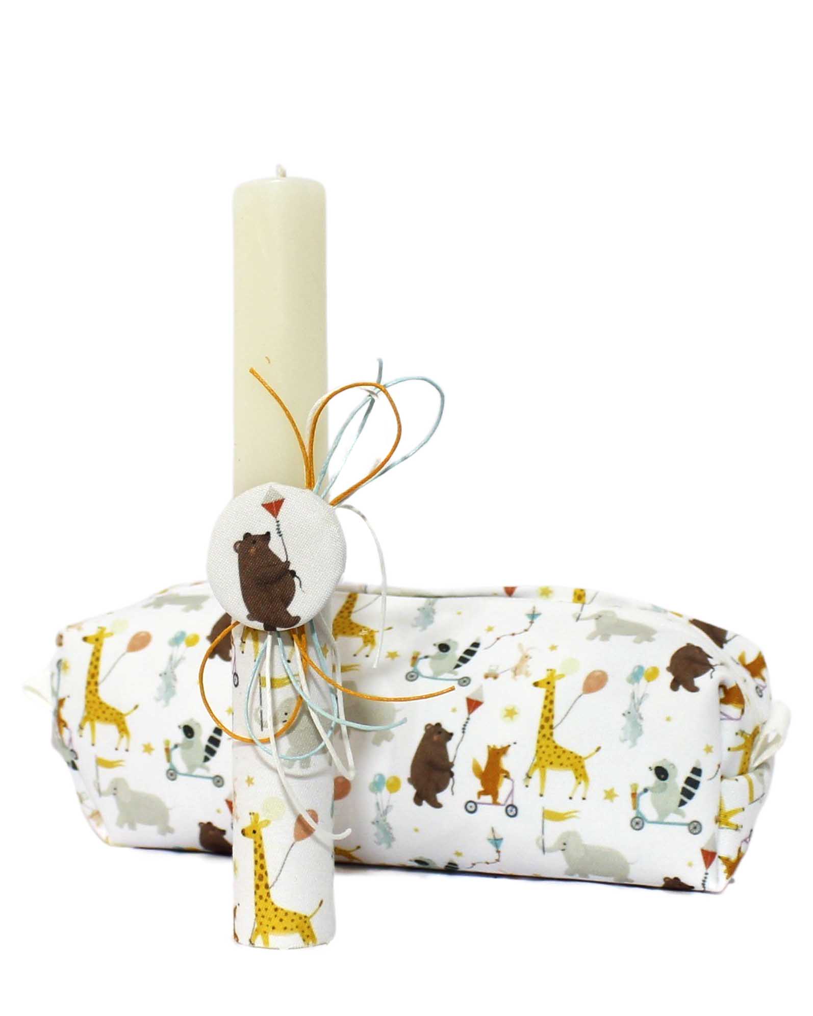 Χειροποίητη πασχαλινή λαμπάδα με κονκάρδα & ασορτί κασετίνα βαρελάκι.