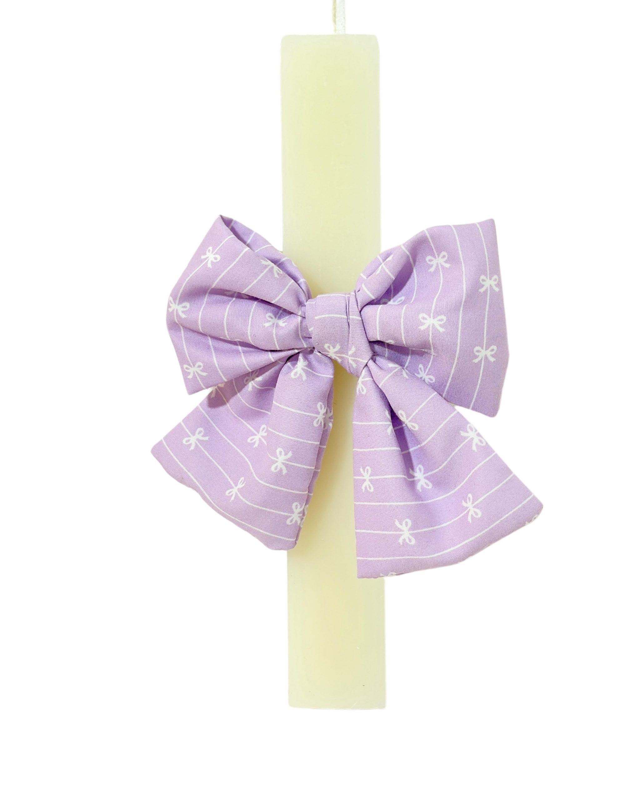 Πασχαλινή λαμπάδα πλακέ με χειροποίητο φιόγκο με κλιπ για τα μαλλιά.