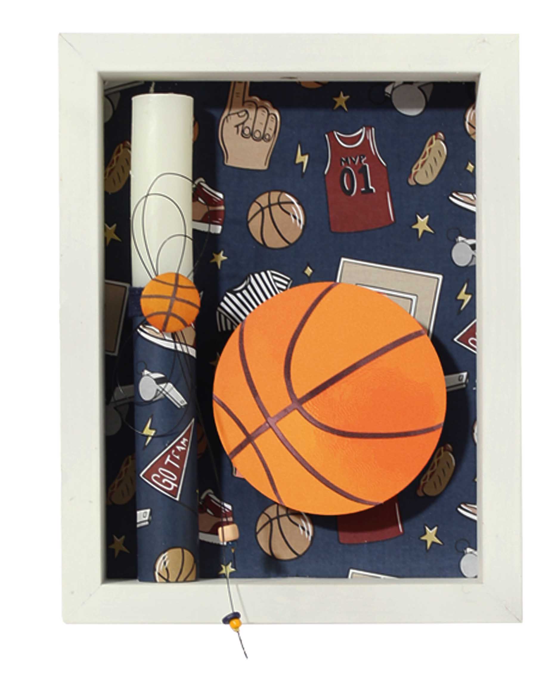 Πασχαλινό Σετ: Λαμπάδα σε χειροποίητο ξύλινο καδράκι με θέμα μπάσκετ (επιτοίχιο και επιτραπέζιο)