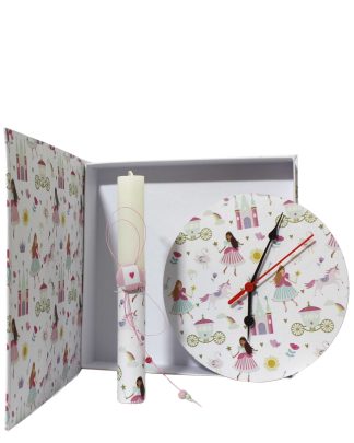Πασχαλινή λαμπάδα και ξύλινο ρολοι τοίχου σε ασορτί χειροποίητο κουτί  βιβλίο.