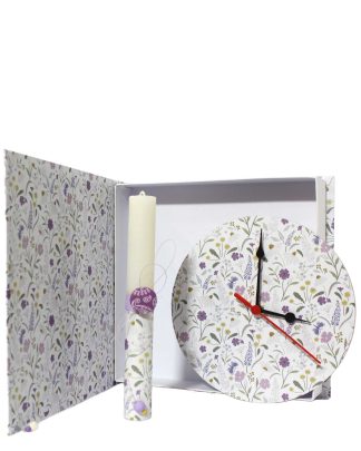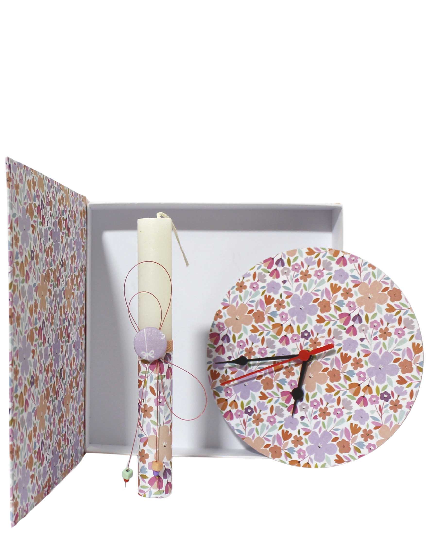 Πασχαλινή λαμπάδα και ξύλινο ρολοι τοίχου σε ασορτί χειροποίητο κουτί  βιβλίο.