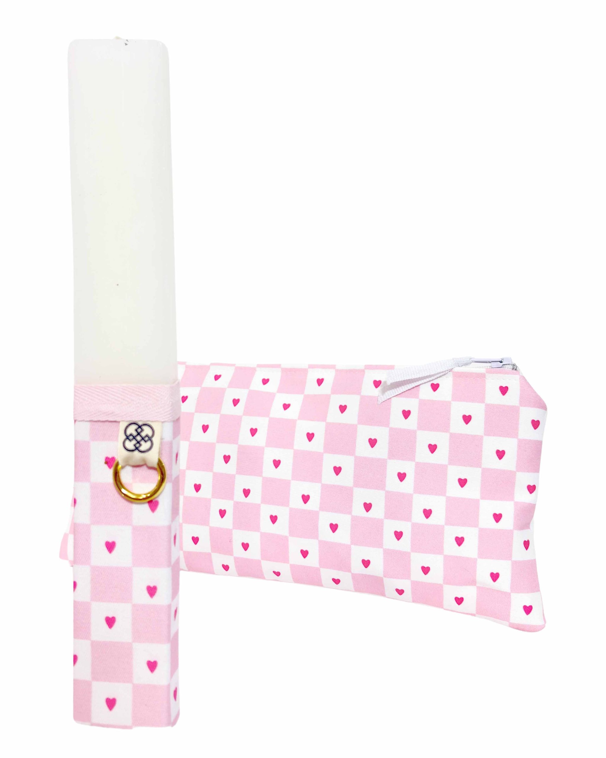 Χειροποίητη πασχαλινή λαμπάδα πλακέ με ασορτί κασετίνα.