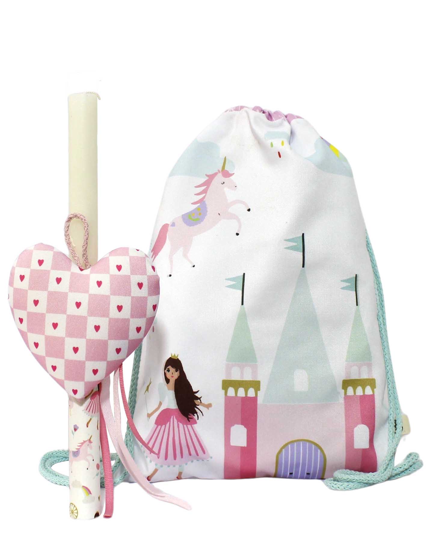 ΣΕΤ Πασχαλινή λαμπάδα και χειροποίητο backpack απο ενισχυμένο ύφασμα.
