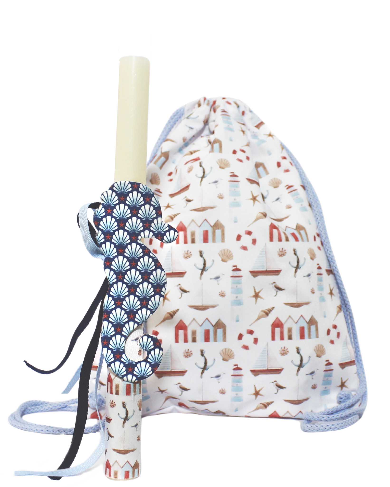 ΣΕΤ Πασχαλινή λαμπάδα και χειροποίητο υφασμάτινο backpack