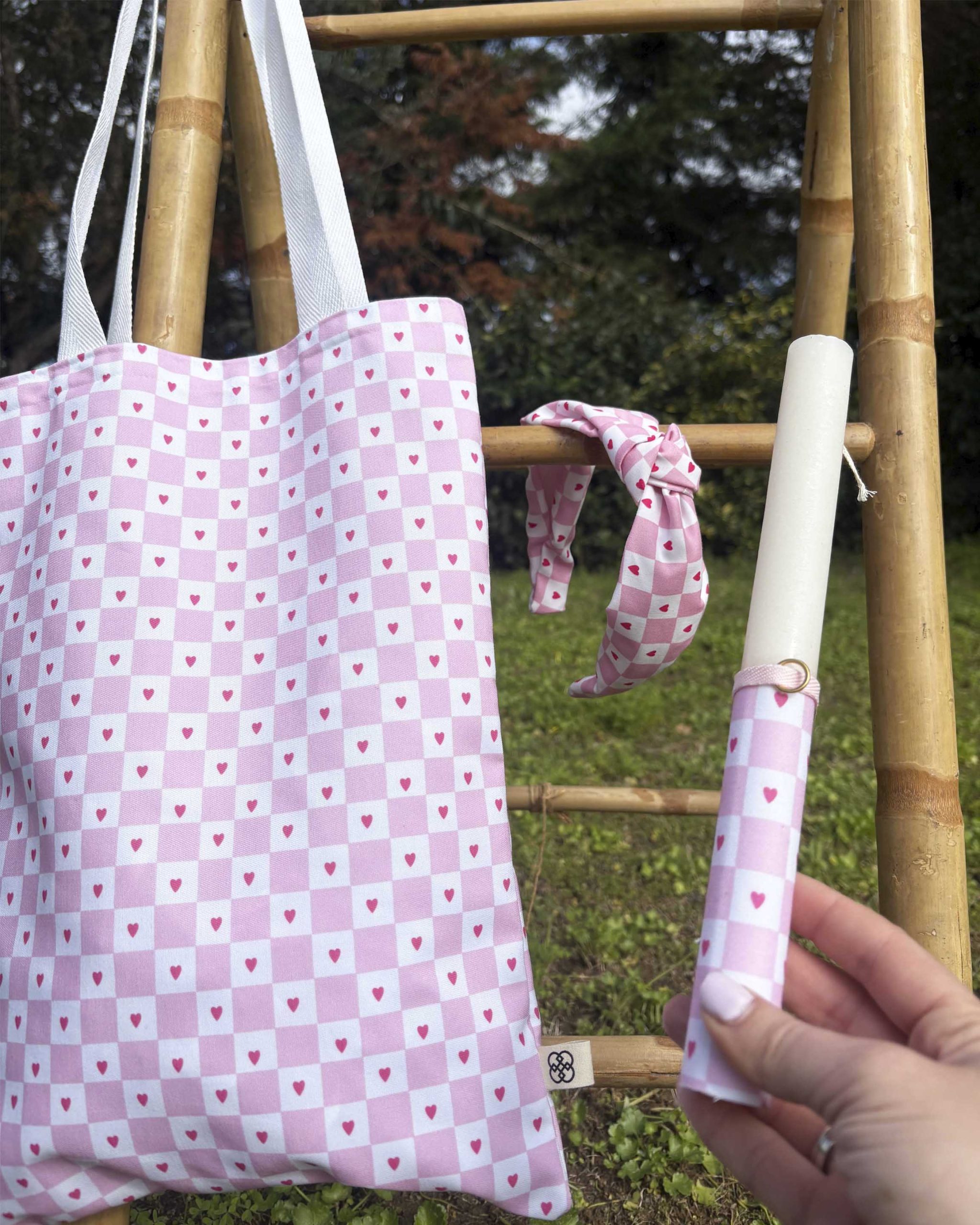 ΣΕΤ ΤΣΑΝΤΑ tote ΜΕ ΠΑΣΧΑΛΙΝΗ ΛΑΜΠΑΔΑ & στεκα μαλλιών