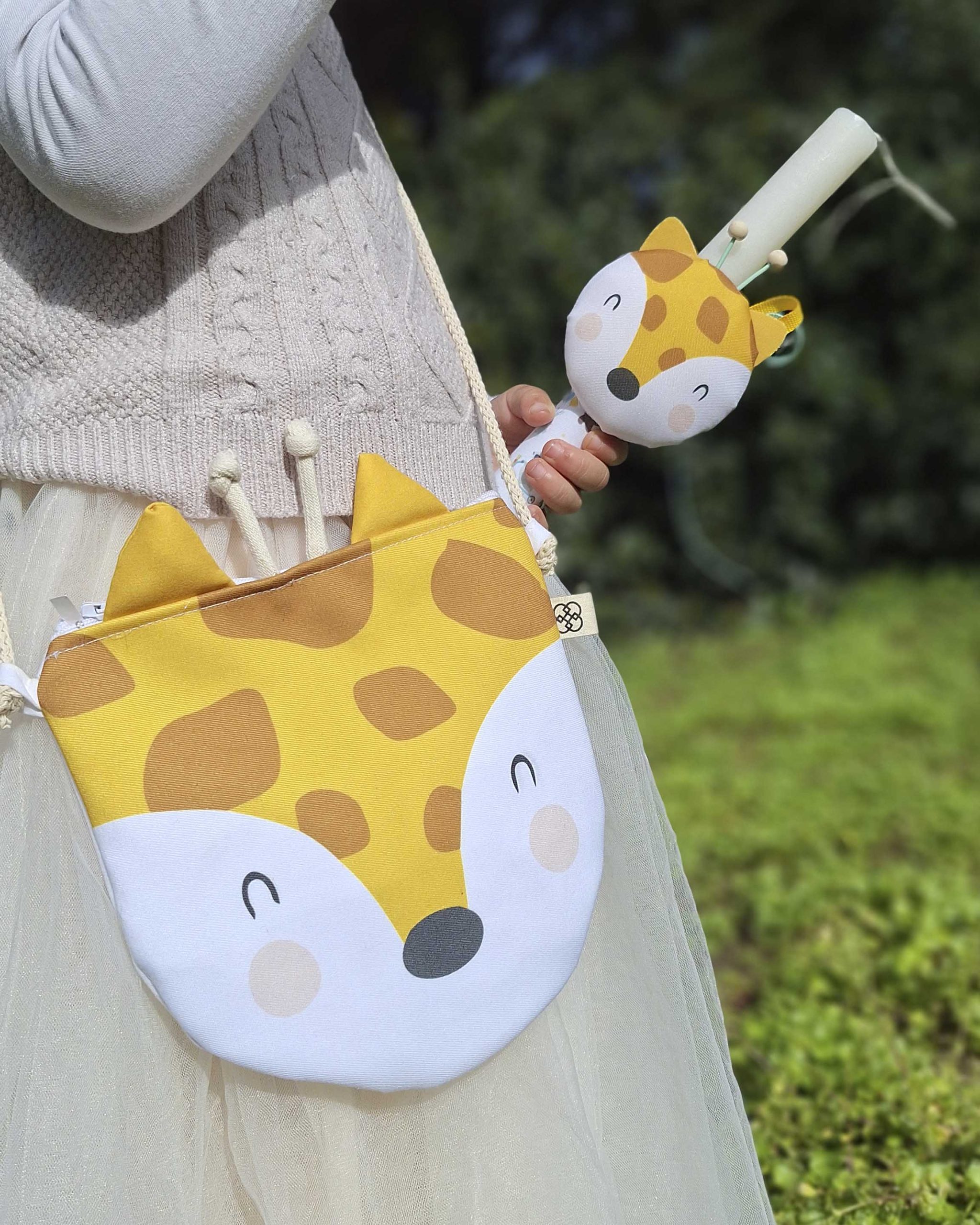 ΣΕΤ Πασχαλινή λαμπάδα και χειροποίητο τσαντάκι Καμηλοπάρδαλη απο ενισχυμένο ύφασμα.